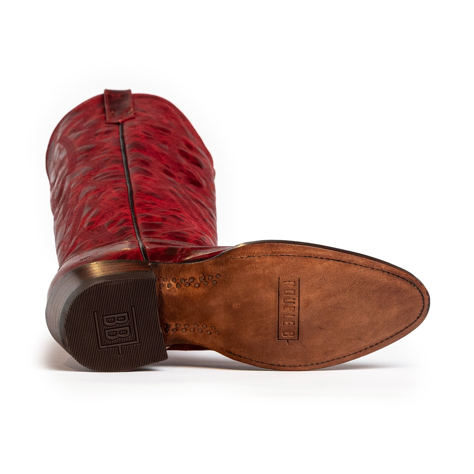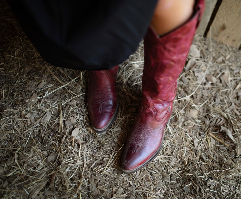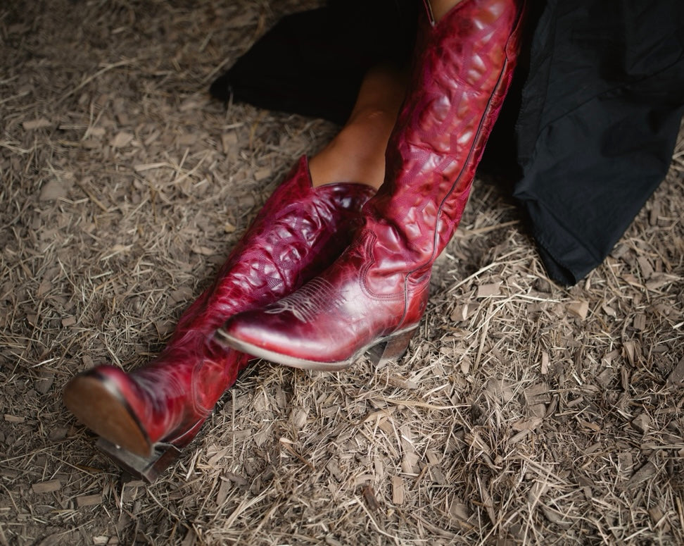 Elevate your Western wardrobe with these handcrafted, knee-high cowgirl boots in rich red goat leather. Featuring a sculpted round toe and artisan stitching, they blend timeless craftsmanship with striking elegance. Designed for the woman who commands every room she walks into.